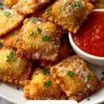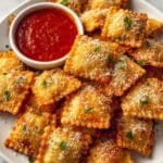 Elevate your presentation by serving the ravioli in small, individual bowls with a drizzle of marinara in the center for dipping. Alternatively, stack them neatly on a platter with dipping cups scattered around for an inviting, shareable appetizer spread.
