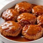 - Bake the Patties: Pour the gravy evenly over the patties. Cover the dish tightly with foil and bake in a preheated oven at 350°F (175°C) for 40–45 minutes, until the patties are fully cooked through and tender.