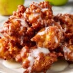 - Glaze and serve: Allow the fritters to cool on the baking sheet for about 5 minutes. Then drizzle the glaze generously over each fritter. Let the glaze set for a few minutes before serving to enjoy a sweet finish.