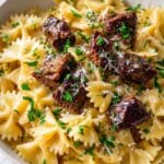 A rich and creamy Beef and Bowtie Alfredo recipe combining tender seared beef strips with perfectly cooked bowtie pasta in a smooth Parmesan Alfredo sauce. This comforting dish comes together quickly for a satisfying meal any night of the week.