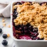 This Blueberry Crisp Recipe freezes beautifully. Wrap it well with plastic wrap and aluminum foil, then freeze for up to 2 months. Thaw overnight in the fridge, then warm in the oven to revive that fresh-from-the-oven crispness.