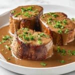 Reheat leftovers in a skillet over low heat, adding a splash of beef broth or water if needed to loosen the gravy. Heating slowly ensures the meat stays tender and the sauce remains luscious, avoiding drying or toughness.