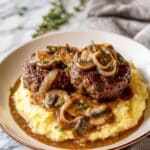 For a rustic-but-elegant touch, plate the Salisbury steaks on a wooden serving board with gravy spooned generously over the top and garnish with fresh herbs. Alternatively, try serving in deep bowls with a dollop of horseradish cream to add a subtle kick that delights your palate.