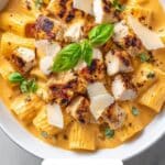 Definitely. This Burst Cherry Tomato Basil Chicken Rigatoni Recipe stores well and reheats nicely, making it a fantastic option for meal prepping lunches or dinners for several days ahead.