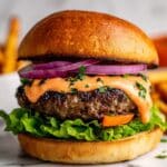 Whisk together mayonnaise, Dijon mustard, and lemon juice in a small bowl until smooth and tangy. This simple sauce adds a bright, creamy layer that lifts the burger to the next level without overwhelming the natural flavors.