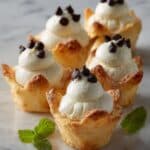Once your cups have cooled, it’s time for the best part—filling them! Snip a small corner off your chilled ricotta mixture bag and pipe the luscious filling steadily into each cup. Top with mini chocolate chips and a light dusting of powdered sugar. This finishing touch not only adds sweetness but also makes them look as good as they taste.