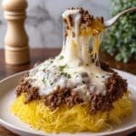 Cheesy Beef Alfredo with Linguine is a creamy and comforting Italian-inspired pasta dish featuring tender ground beef, rich Alfredo sauce made with heavy cream, Parmesan, and mozzarella cheeses, all tossed with perfectly cooked linguine. Ready in just 30 minutes, this hearty meal combines savory flavors and creamy textures for a satisfying dinner.