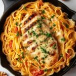 Remove the skillet from heat and allow the pasta to sit for a few minutes. This resting time helps the sauce thicken slightly and all the flavors marry together beautifully. Just before serving, sprinkle chopped fresh parsley over the top for a final touch of brightness and an inviting presentation.
