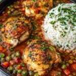 Looking to impress guests or just elevate your weekday dinner? Serve Chicken Afritada Recipe in a beautiful ceramic casserole or a rustic Dutch oven, bringing a cozy, family-style vibe to the table. You can also plate it over a nest of buttery mashed potatoes or creamy polenta for a modern twist. For a colorful presentation, arrange the chicken and vegetables neatly, allowing those vibrant red and green peppers, carrots, and peas to shine through with each portion.