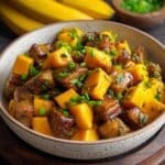 Finally, gently fold in the diced fresh mango and warm everything together for another 1 to 2 minutes. This preserves the mango’s juicy texture while infusing the dish with a tender, fruity sweetness.