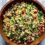 This Cowboy Caviar recipe is a vibrant, fresh, and flavorful salad that combines diced tomatoes, bell peppers, onions, jalapeños, avocado, corn, black beans, and cilantro, all tossed in a tangy lime and Italian dressing. It’s perfect as a healthy snack with tortilla chips, a side dish, or a topping for grilled meats, offering a delicious Southwestern flair in just 30 minutes.