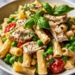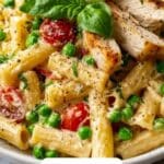This Creamy Chicken and Pea Carbonara Pasta is a delicious, hearty dish combining tender chicken breast, vibrant peas, and a rich, cheesy sauce made with a blend of reduced-fat cheeses. Ready in just 30 minutes, it’s the perfect weeknight meal that balances protein and vegetables in a comforting pasta dish.