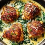 This Chicken Florentine recipe features tender, juicy chicken thighs marinated in aromatic spices, pan-seared to a golden brown, and served in a rich, creamy sauce made with fresh spinach, Parmesan, and a splash of white wine. It’s a classic Italian-inspired dish that’s easy to prepare and perfect for a comforting dinner.