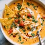 This creamy chicken tortilla soup is a comforting and flavorful meal perfect for any day. Featuring shredded chicken, black beans, corn, and a rich blend of spices in a creamy broth, it’s garnished with crunchy tortilla chips and fresh cilantro for added texture and freshness.