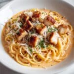 A simple sprinkle of fresh parsley adds a fresh contrast to the rich sauce, but you could also add grated Parmesan cheese for an extra layer of flavor and richness. Crispy bacon bits or toasted pine nuts can add wonderful texture and a smoky crunch, elevating the dish even further.