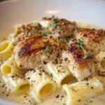 There is something undeniably comforting about the Creamy Garlic Butter Chicken and Rigatoni in Parmesan Sauce Recipe that makes it a go-to favorite in any kitchen. It’s straightforward enough for busy nights but special enough to impress guests, too. I wholeheartedly encourage you to give this dish a try because it truly brings joy and satisfaction to the table with every bite. Happy cooking!