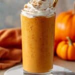 This Pumpkin Smoothie recipe is a quick and delicious way to enjoy the rich, warm flavors of pumpkin and pumpkin pie spice in a creamy, satisfying drink. Perfect for fall or anytime you crave a cozy yet nutritious treat, this smoothie blends pumpkin puree, Greek yogurt, and a touch of sweet white chocolate hazelnut spread for a balanced flavor. The addition of frozen banana adds natural creaminess and sweetness but can be omitted for a lower-carb option.