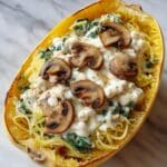 Creamy Spinach and Mushroom Stuffed Spaghetti Squash Recipe