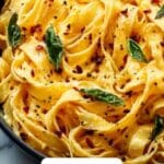 - Toss Pasta with Sauce: Add the drained fettuccine to the skillet and gently toss in the sauce until the pasta is fully coated, adding more reserved pasta water as needed to loosen the sauce.