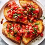 This Easy Bruschetta Recipe is naturally vegan if you use a vegan-friendly baguette or bread. For gluten-free options, swap the baguette with gluten-free bread or crispbreads that toast well.