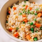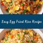 This easy egg fried rice recipe is a quick and flavorful dish perfect for using up day-old rice. Featuring scrambled eggs, sautéed onions, and optional peas and carrots, it’s seasoned with soy sauce, oyster sauce, and a touch of toasted sesame oil for a savory taste. A versatile and satisfying single-serving meal that can be prepared in under 15 minutes.