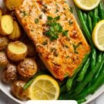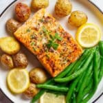 This easy salmon with lemon recipe is a quick and healthy meal perfect for busy weeknights. Featuring tender salmon filet baked with baby potatoes and green beans, all tossed in a flavorful lemon-honey and herb marinade, it delivers delicious, fresh flavors in just 30 minutes.