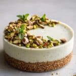 Because it’s a no-bake cheesecake, reheating isn’t necessary or recommended. It’s best enjoyed chilled to highlight the fine balance of creamy texture and refreshing pistachio flavor.