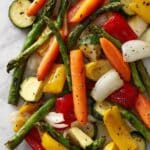 Absolutely! Fresh asparagus, carrots, and onions can be used. Just make sure to cut them into similar sizes and roast a little longer if they’re larger to ensure even cooking.