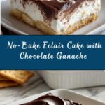 This Eclair Cake with Chocolate Ganache is a no-bake dessert that layers creamy vanilla pudding and whipped topping between crispy graham crackers. Topped with a rich, homemade chocolate ganache, this chilled treat is perfect for gatherings and easy to prepare ahead of time.