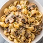 This French Onion Pasta recipe transforms the rich, savory flavors of classic French onion soup into a comforting pasta dish. Caramelized onions create a deeply flavorful base, combined with garlic, Worcestershire and soy sauces, herbs, and melted Gruyere and Parmesan cheeses for a creamy, satisfying meal perfect for cozy dinners.