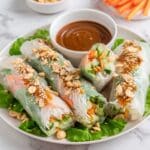 Fresh Spring Rolls with Peanut Sauce are light, refreshing Vietnamese-style rolls filled with vibrant vegetables, fresh herbs, and optional shrimp or tofu, served with a flavorful creamy peanut dipping sauce. These no-cook, healthy rolls make a perfect appetizer or snack for any occasion.