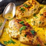 This Garlic Butter Chicken recipe features tender, juicy boneless chicken breasts cooked in a rich and flavorful garlic butter sauce. Enhanced with lemon juice and Italian seasoning, this skillet-cooked dish is perfect for a quick and delicious weeknight dinner that serves four.