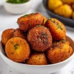 To freeze, place uncoated potato balls on a baking sheet and freeze until firm, then transfer them to a freezer-safe container or bag. When you’re ready to enjoy, coat them with egg and breadcrumbs and fry directly from frozen. This way, you can have a batch ready for whenever the cravings hit.