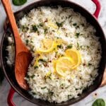 This Greek Lemon Rice recipe is a bright and flavorful side dish featuring long-grain rice cooked with orzo pasta, fresh lemon juice and zest, aromatic herbs like dill and parsley, and a base of savory low-sodium broth. Perfect for complementing Mediterranean meals, it delivers a delightful balance of tangy citrus and fresh herbaceous notes with a light, fluffy texture.