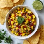 Enjoy a vibrant and flavorful Grilled Pineapple Salsa paired with crispy Cinnamon Chips, blending smoky grilled fruits and vegetables with sweet, spiced tortilla chips. This Mexican-inspired appetizer is perfect for summer gatherings, offering a tropical twist with a hint of cinnamon crunch.