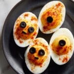 Absolutely! The food coloring is purely for the fun Halloween effect. Without it, you’ll still have delicious classic deviled eggs that everyone will enjoy, though they won’t have that hallmark spooky orange color.