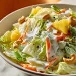 Drizzle the prepared dressing over the salad base, then gently toss until everything is evenly coated. The dressing clings beautifully to the cabbage and pineapple, making each forkful flavorful. For the best texture, serve immediately to enjoy the fresh crunch. If you’d like to prepare ahead, chill the salad in the fridge but be aware the cabbage will soften over time.