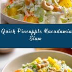 In a large bowl, toss together the coleslaw mix, pineapple tidbits, and chopped macadamia nuts. This combination sets the stage with a variety of textures—crisp cabbage, juicy pineapple, and crunchy nuts—that you’ll love in every bite.