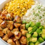 These Hot Honey Chicken Bowls combine crispy, tender chicken coated in a sweet and spicy hot honey glaze, served over your choice of rice or greens and topped with fresh, crunchy vegetables and creamy avocado. Perfectly balanced with a kick of heat and a touch of sweetness, this dish is an easy weeknight dinner that’s both delicious and satisfying.