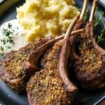 Allow the lamb chops to rest for 5 minutes to let the juices redistribute, resulting in a juicier bite. Just before serving, sprinkle fresh parsley over the top for a pop of color and fresh aroma, and tuck in lemon wedges on the side to squeeze over, brightening up the rich crust and lamb with a zesty finish.