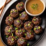 - Serve: Arrange the glazed meatballs on a serving plate. Garnish with additional chopped green onions or a sprinkle of sesame seeds if desired. Serve immediately alongside the spicy mayo dip for dipping.