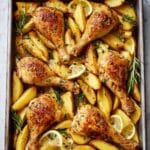 A delicious and easy Greek-inspired recipe featuring tender bone-in chicken thighs and crispy baby potatoes roasted with bright lemon, garlic, and fragrant herbs. This one-pan meal is perfect for a flavorful weeknight dinner or casual entertaining.