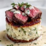 This Loaded Baked Potato with Steak Bites recipe combines tender, fluffy baked russet potatoes with juicy, seasoned steak bites and a rich, creamy parmesan sauce. Perfect for a hearty and satisfying meal, it features a Cajun kick and garlic butter flavor for an elevated comfort food experience.