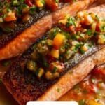 While this recipe is best enjoyed fresh, you can freeze the cooked salmon and sauce separately to preserve texture. Wrap the salmon tightly and store the sauce in a freezer-safe container. They will keep in the freezer for up to a month. Thaw overnight in the refrigerator before reheating.