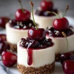 - Top with Cherries: Place a few fresh cherries on top of each cheesecake bite and drizzle them lightly with cherry syrup or your preferred cherry topping for added flavor and decoration.