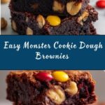 Delight in rich and decadent Monster Cookie Dough Brownies featuring a fudgy brownie base topped with a creamy, egg-free peanut butter cookie dough layer studded with oats, mini chocolate chips, and colorful mini M&M’s for a perfect balance of flavors and textures.