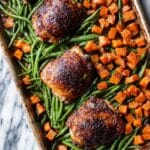 Ensure the sweet potatoes are fork-tender and the chicken thighs have reached an internal temperature of 170 degrees Fahrenheit (77 degrees Celsius). If needed, add extra cooking time. Portion out the chicken and vegetables, and don’t forget to drizzle the pan sauce over everything for maximum flavor impact.