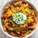 For a fun twist, serve the pasta in small, individual bowls topped with a dollop of sour cream and a sprinkle of shredded cheese. Or, scoop it into crispy taco shells or bell peppers for playful handheld options that work great for gatherings or picky eaters.