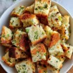 This buttery, herbaceous stuffing pairs beautifully with roasted turkey or chicken, inviting you to dive into a classic holiday plate. It also complements hearty mains like glazed ham or pork roast, adding a soft, flavorful contrast to roasted vegetables or a crisp green salad.