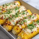 Garnishing this Parmesan Corn on the Cob Recipe with extra Parmesan cheese enhances that rich, nutty flavor, while chopped green onions bring a subtle freshness and crunch. For an added kick, sprinkle with chili flakes or a squeeze of fresh lime to brighten every bite. These touches make the dish look as good as it tastes!